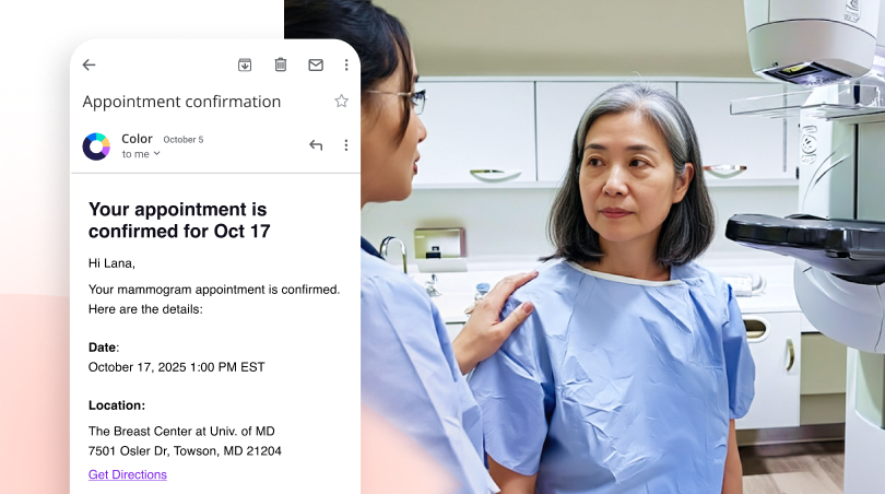 If you’re due for screening, a Color Medical clinician will order the mammogram for you and the Color care team will help you schedule it.