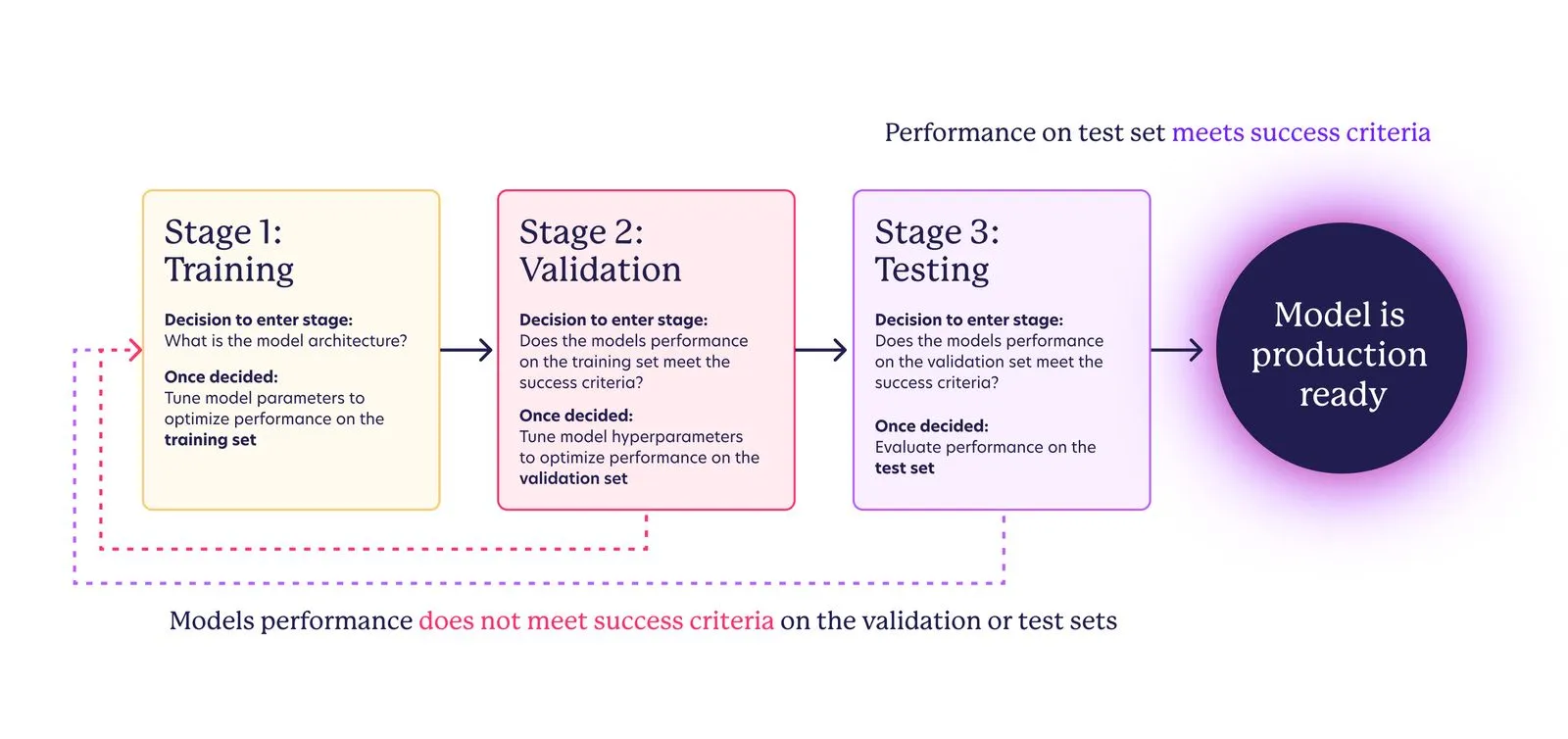 With those datasets, the stages of model development follow: